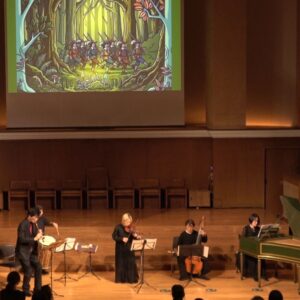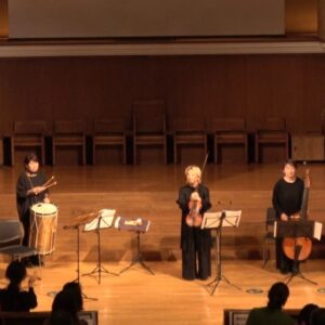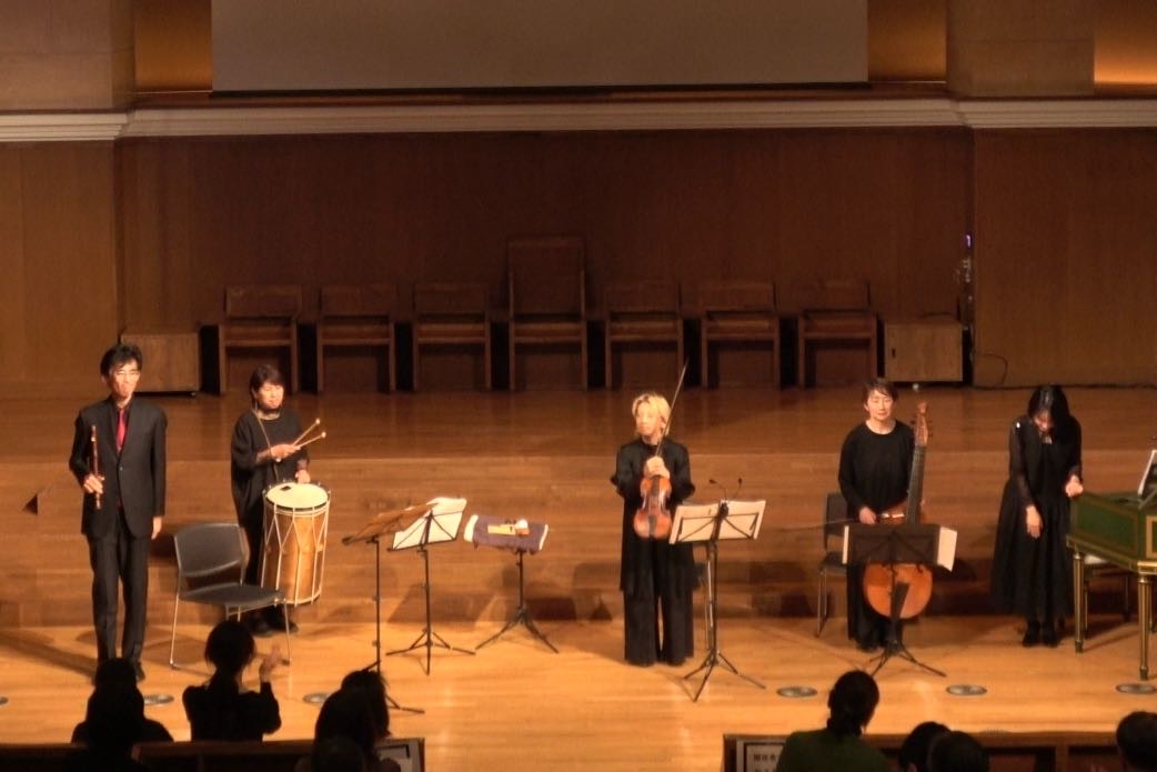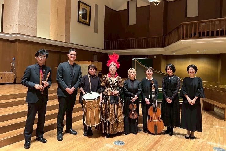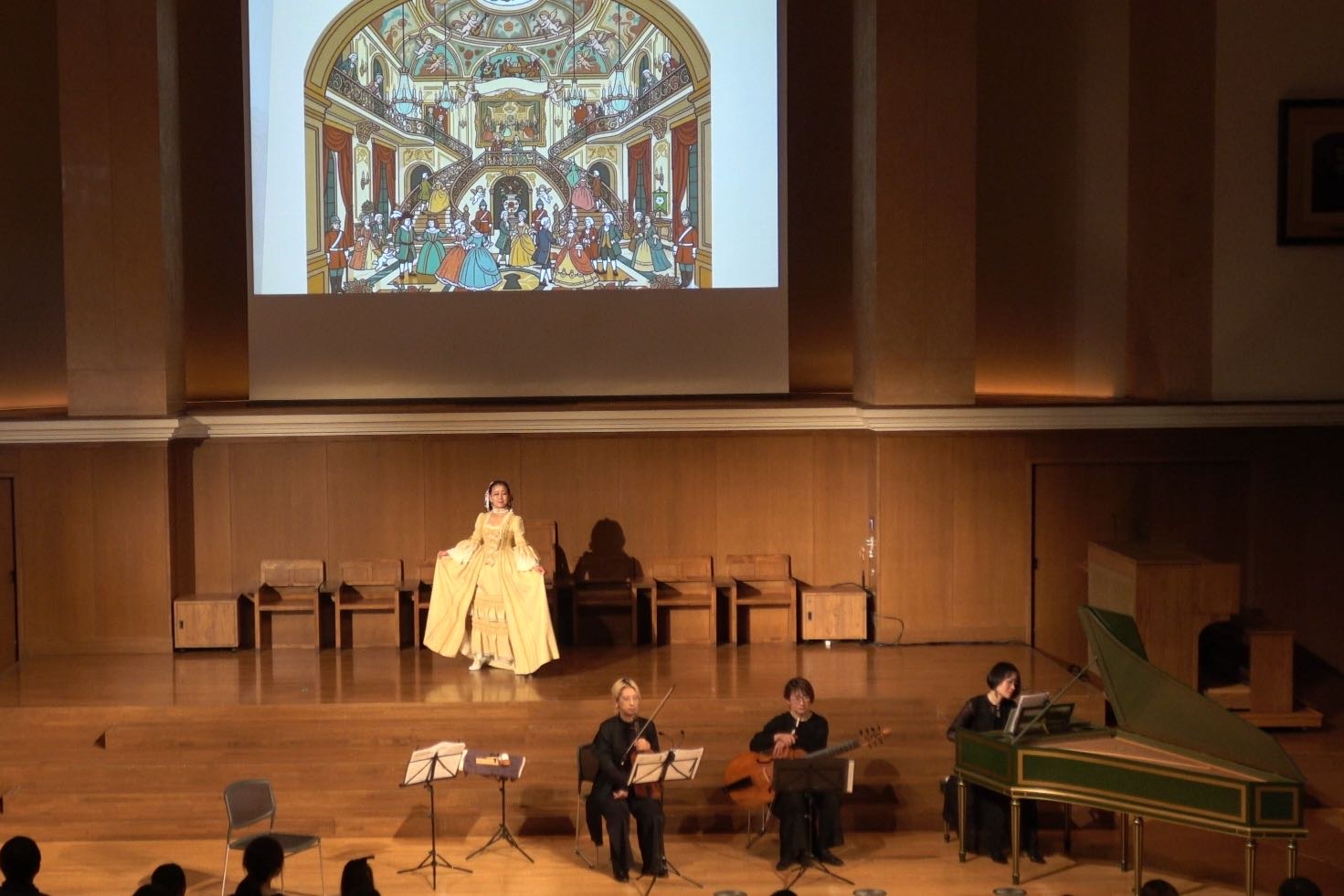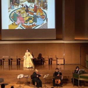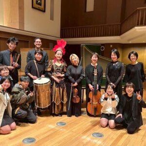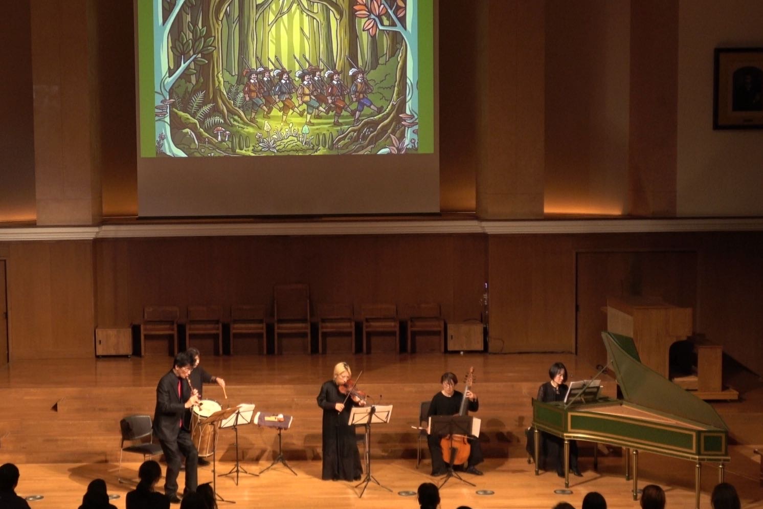 10月のバロック楽器体験と2月のバロックダンス体験両ワークショプに続き今回も本校生徒をはじめ大勢お越しいただきました。チャペルに響く古楽器の音色を皆様堪能され、最後は観客の皆様も参加してイギリス民謡「グリーンスリーブス」を古典舞踏で締めくくりました。