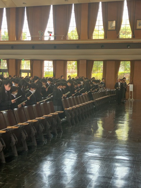 新入生の皆さんのこれからの学校生活が充実し、夢に向かって歩み続けられることを心より願い、式辞といたします。改めまして、ご入学おめでとうございます。