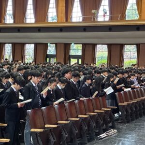 聖書には「求めなさい。そうすれば与えられる。門をたたきなさい。そうすれば開かれる」という御言葉があります。皆さんが自ら門をたたき続け、この学び舎で「考える葦」として、また「良心の全身に充満したる」人物として飛躍していくことを確信し、全力でサポートしてまいります。
