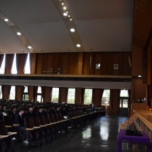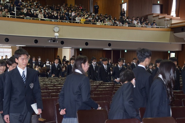 卒業生を送り出したのち、続いて3学期終業式・離任式を執り行いました。