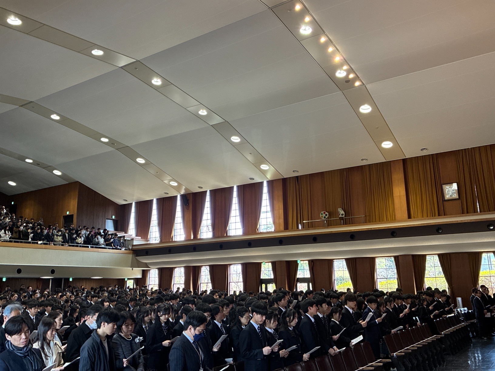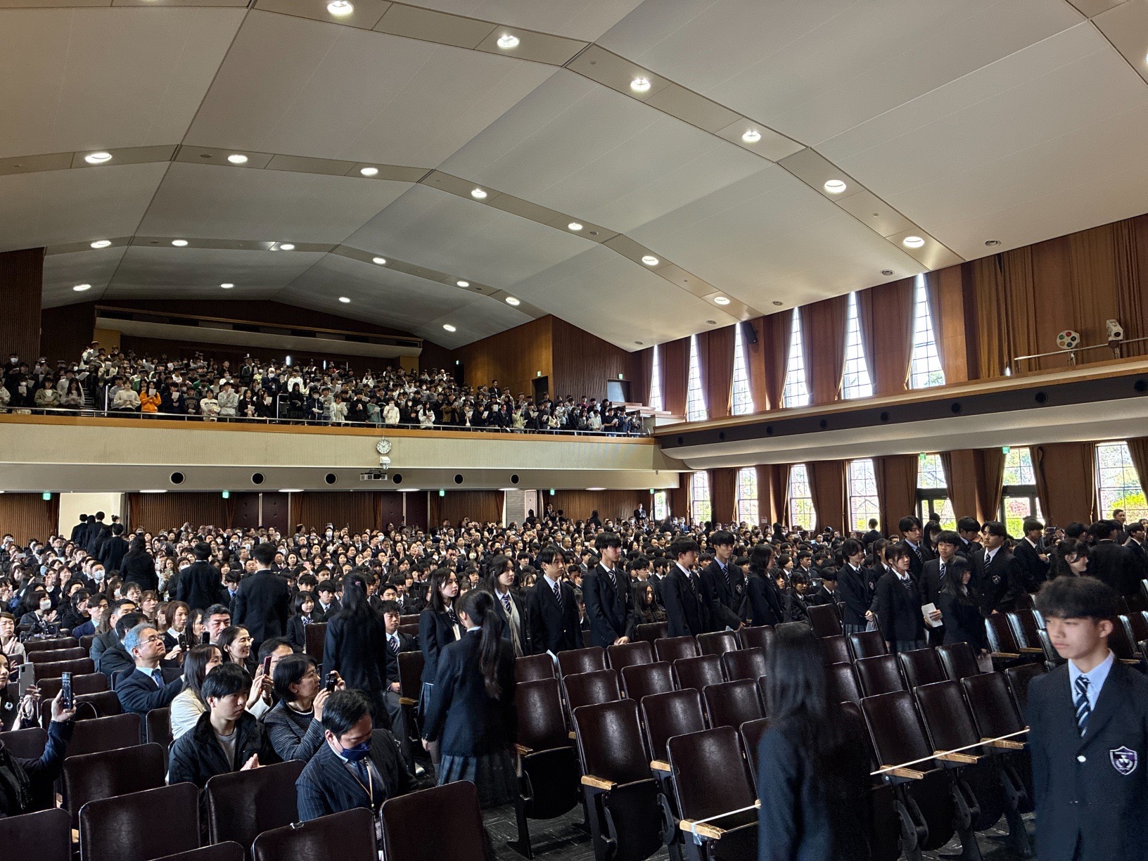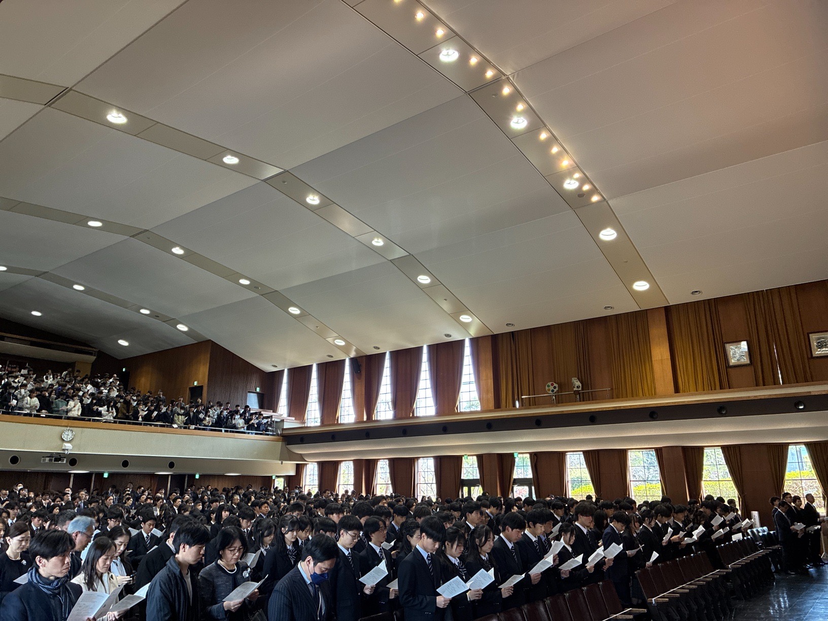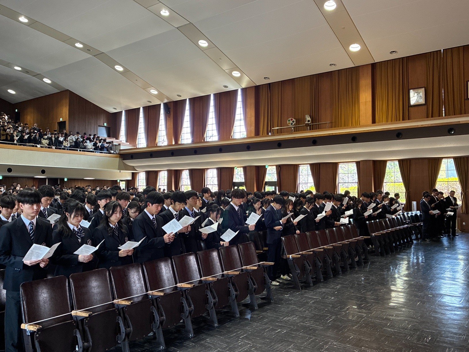 陽光が輝きを増し、校庭の木々が新たな息吹を湛えるこの佳き日に、ご来賓並びに保護者の皆様のご臨席を賜り、2025年度同志社香里中学校卒業式を挙行できますことを、心より厚く御礼申し上げます。