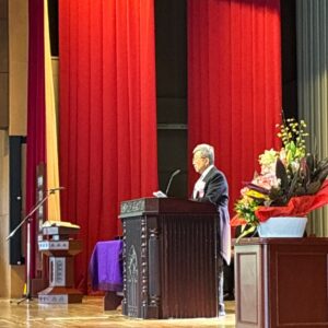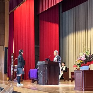 卒業は一つの区切りであり、同時に壮大な探求の旅の始まりです。同志社香里で培った「良心」という羅針盤を胸に、自分を信じて進んでください。皆さんが新しい価値を創造するリーダーへと成長することを確信しています。皆さんの歩む道が豊かで実り多いものとなることを祈念し、式辞といたします。