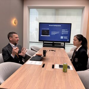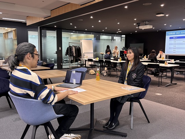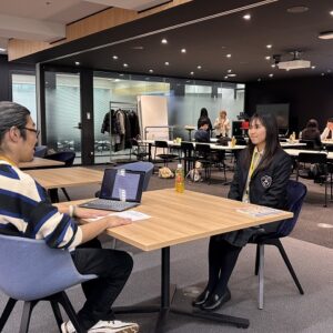 12月2日(火)に西梅田にあるSAPジャパン西日本支社を訪問しました。午前はアイスブレイクの後、事前に提出していた自己アピールカードのフィードバック、オフィスツアー、ランチを食べながらの質問タイム等を行いました。そして午後からは模擬面接とグループでのキャリアトーク等、たいへん盛りだくさんで学びの多い1日を過ごすことができました。その後も、お礼状のやり取りや面接時のフィードバック等の事後研修があり、参加した生徒たちからもたいへん充実した研修だったと好評でした。