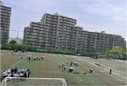 午前中は、第2グラウンドにてインストラクターの指導の下、各クラスでチームビルディングに取り組みました。暑い一日ではありましたが、気持ちよく晴れ渡った青空のもとで試行錯誤しながら、クラスメイトとの距離を縮めていきました。