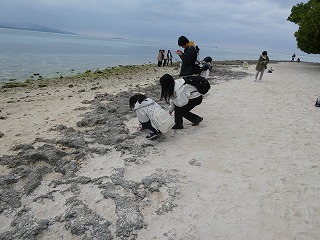 天候次第では濁ってしまう海水も、今日はとても透き通っていてサンゴ礁もよく見えました。寒さは少しありましたが、それを吹き飛ばすかのようなきれいな光景を目にし、生徒たちにも深い印象を与えたようでした。初めてシュノーケリングをした生徒もいて、みんなと潜ったこの体験は、生涯忘れられないものとなったことでしょう。