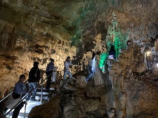 その後は鍾乳洞へ行き、その場でGグループの記念撮影も行われました。鍾乳洞では600m近くを歩いたようで、疲れた生徒もいたかもしれませんね。今晩はミルミル本舗の素敵な味を思い出しながら、ぐっすりと眠れることでしょう。