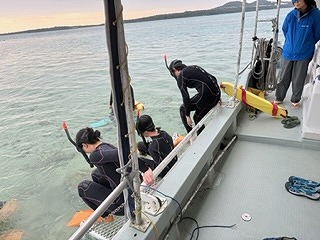天候次第では濁ってしまう海水も、今日はとても透き通っていてサンゴ礁もよく見えました。寒さは少しありましたが、それを吹き飛ばすかのようなきれいな光景を目にし、生徒たちにも深い印象を与えたようでした。初めてシュノーケリングをした生徒もいて、みんなと潜ったこの体験は、生涯忘れられないものとなったことでしょう。