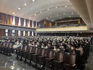 あいにくの雨でしたが、今までのように教室での配信視聴ではなく、皆で一堂に会して始業式を行うことができました。