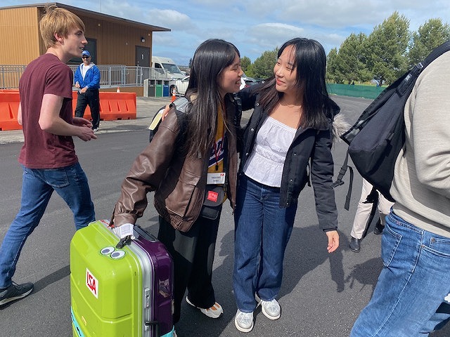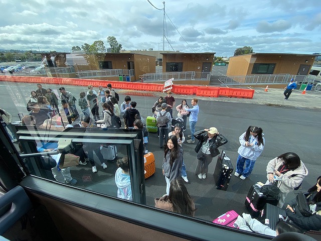 このプログラムでは、同志社の各中高の参加者が「チーム同志社」として渡航し、アメリカ・カリフォルニア州にあるNUEVA SCHOOLの生徒さんの自宅にホームステイをさせてもらいます。また、NUEVAも中学生は5月、高校生は2月に日本に来るので、そのときに同志社の生徒がNUEVAの生徒をホームステイさせてあげます。今回アメリカに来た高校1年生は、2月にNUEVAの子たちをホームステイに受け入れたところで、今日は1ヶ月ぶりの再会となりました。