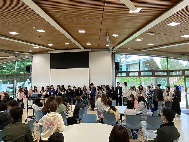 中学生は8年生全員(80人くらい)の前で英語で発表をしました。以前から知らされていたので、日本にいるときに原稿やスライドを作成して、練習をしてありました。その結果、本番はすばらしかったです!!!FANTASTIC!!! リアルな相手を目の前にしての発表は、自分たちで練習しているときにはなかったお客さんの反応が嬉しくて、発する1語1語に気持ちが乗っていました。「伝わる喜び」を実感して、改めて言葉の力を感じたと思います。